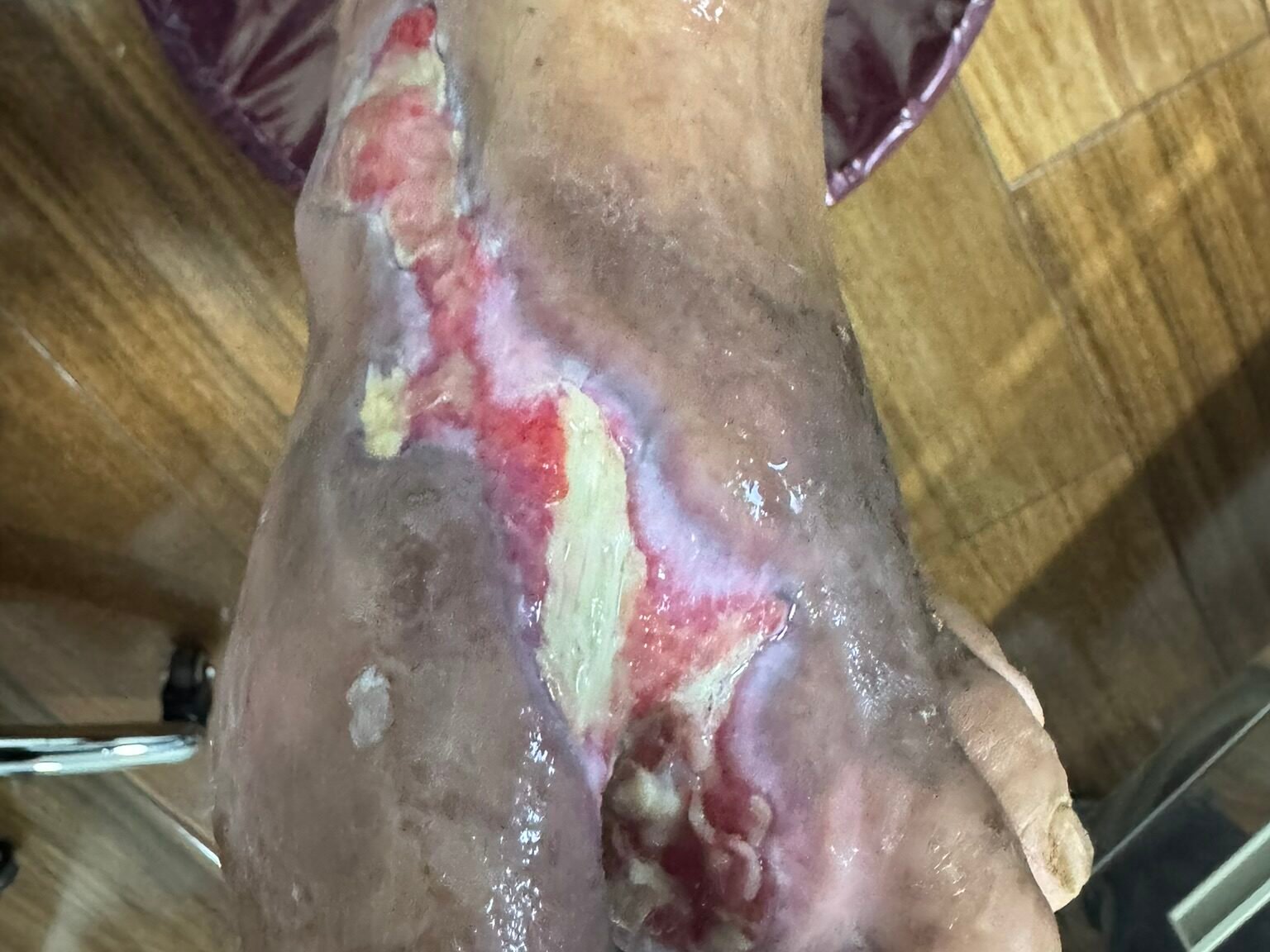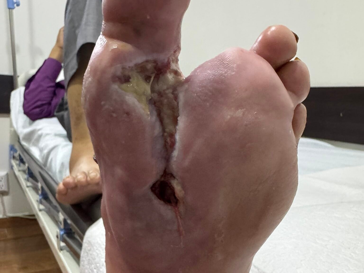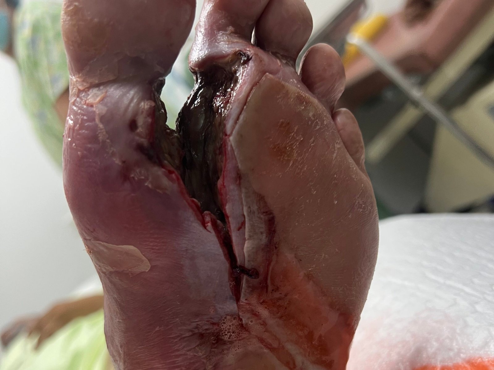 Paciente que consultó por una lesión tipo bulla en el segundo ortejo del pie izquierdo, con aproximadamente 15 días de evolución. La lesión progresó rápidamente, convirtiéndose en una úlcera extensa con salida de secreción fétida y cambios notorios en la coloración de la piel, hasta presentar tejido necrótico visible en la totalidad del ortejo afectado. Hacer mención que paciente visito otros centros médicos el cual le indicaban amputación total de pie izquierdo.